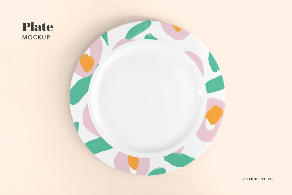 Single plate mockup with an editable background. Includes two options: all over design or design just around the edge of the plate (see the images).